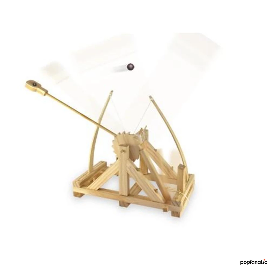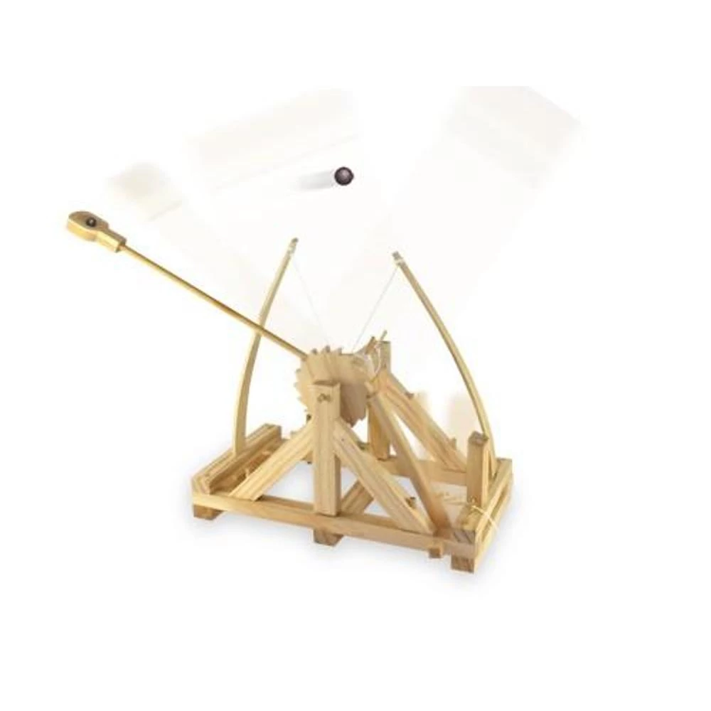 Építsd meg saját Leonardo da Vinci katapultodat!Ez a méretarányos, működő modell da Vinci harci gépezetei közül az egyik legismertebbet idézi meg, a Codex Atlanticus alapján. A fa alapanyagból készült szerkezet akár 5 méterre is képes kilőni a mellékelt agyaggolyókat.